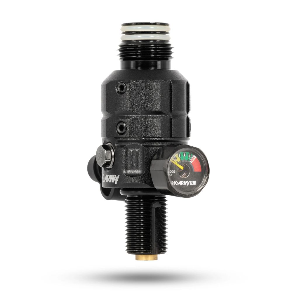 The HK Army Turbine Pro Regulator is engineered for players who demand flawless performance under pressure. Every component has been re-imagined for reliability, precision, and confidence in the most demanding environments. From its fully adjustable output pressure (350psi-650psi) to its 360° rotational cap that lets you align the gauge and fill valve exactly how you want them, to its reinforced internals and pro-grade quality control testing, the Turbine Pro Reg sets a new standard for air system technology.